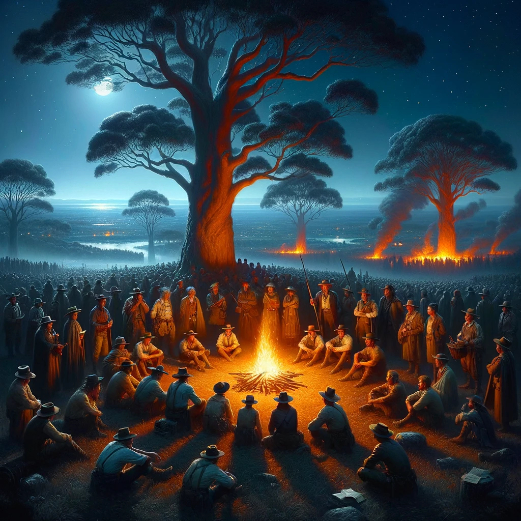 بينما جلسوا حول النار، اللهب يلقي ضوءًا دافئًا على وجوههم، تحدث أورانج عن المستقبل. كان صوته ثابتًا، لكن كان هناك تيار من القلق. “لقد بنينا شيئًا جميلًا هنا،” قال. “لكن يجب أن نكون يقظين. مخلوقات الليل هي ظل يزحف أقرب، ويجب أن نكون مستعدين للوقوف ضدهم.”