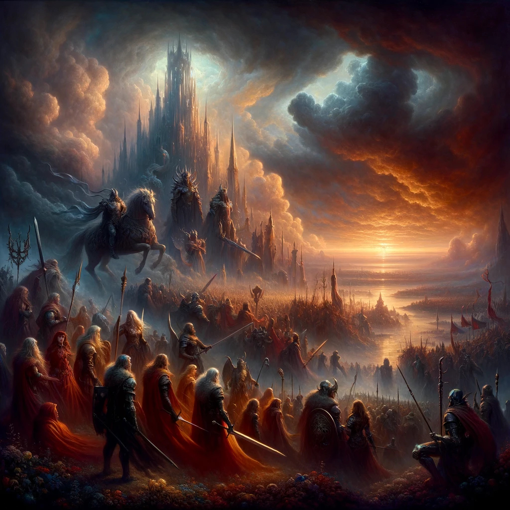 As the council disbanded, the sons of Red and Orange set about their tasks, each moment a step towards the confrontation that awaited. The whispers of war, once mere rumors, became a clarion call to action, a summons to defend the realm against an enemy whose hatred knew no bounds.