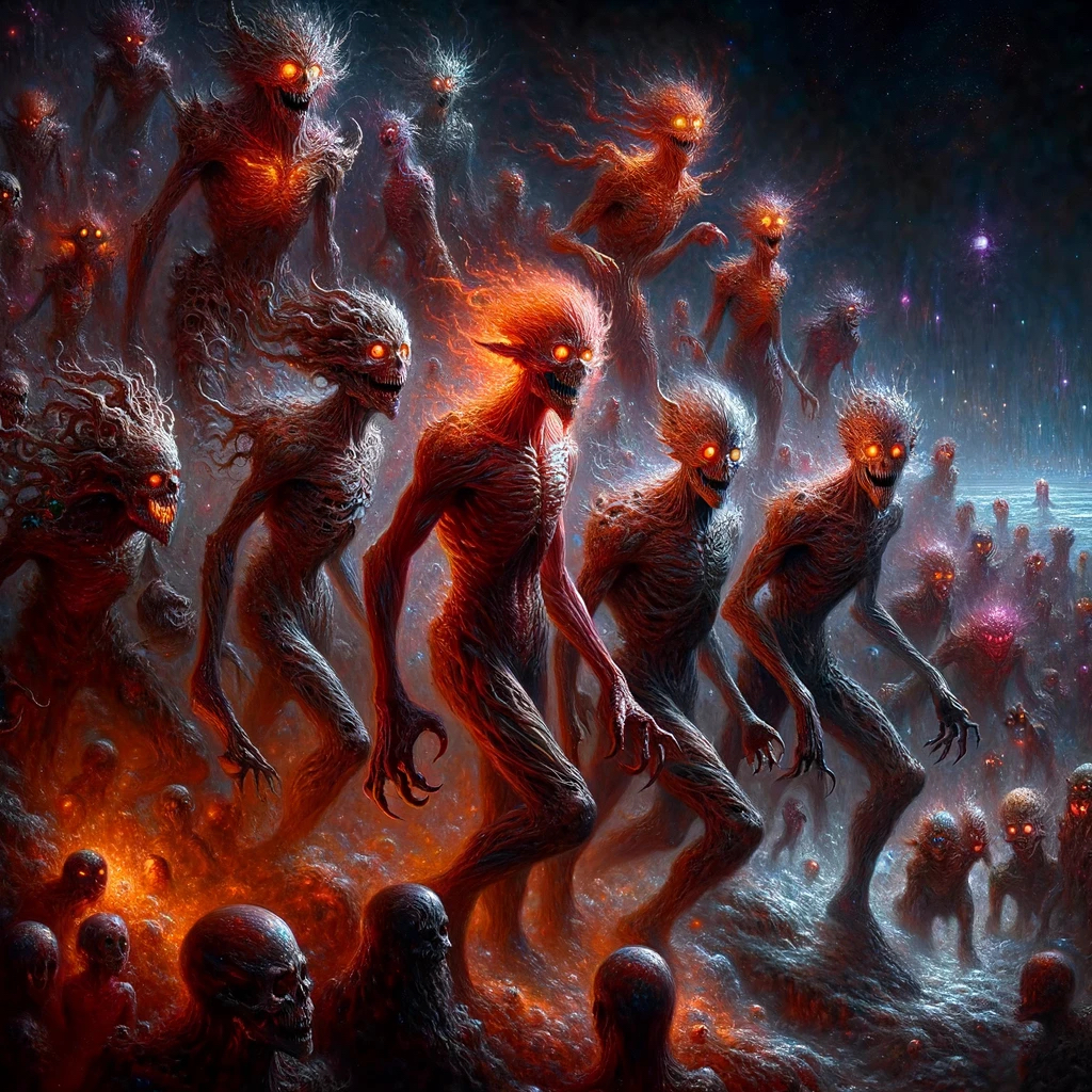 The Creatures of Night (CON), emboldened by their mistress’s power, emerged from the shadows with renewed vigor. Their forms, more grotesque and terrifying than before, were not merely creatures of flesh and bone but manifestations of the sins and fears that lurked in the hearts of all. Each step they took upon the land was a desecration, leaving behind a trail of corruption that marred the beauty of Dreamland, turning hope into despair, love into hatred.