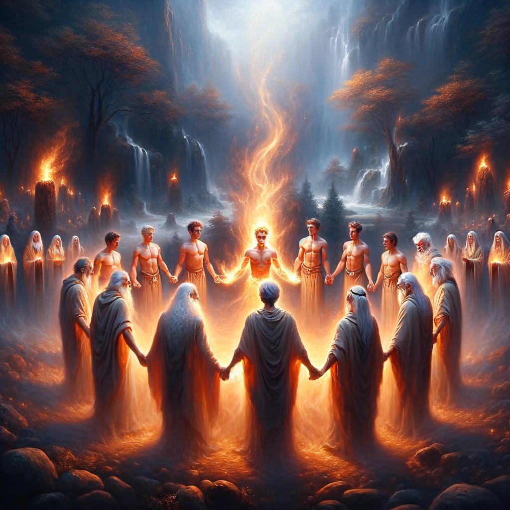 The climax of their story, a culmination of years of struggle and sacrifice, was upon them. The battle that unfolded was a maelstrom of light and shadow, a clash of wills that echoed the eternal struggle between creation and destruction. The sons of Red and Orange, at the forefront of the fray, were beacons of hope, their fiery gaze cutting through the darkness, a reminder that even in the darkest of times, the light would find a way to shine through.
