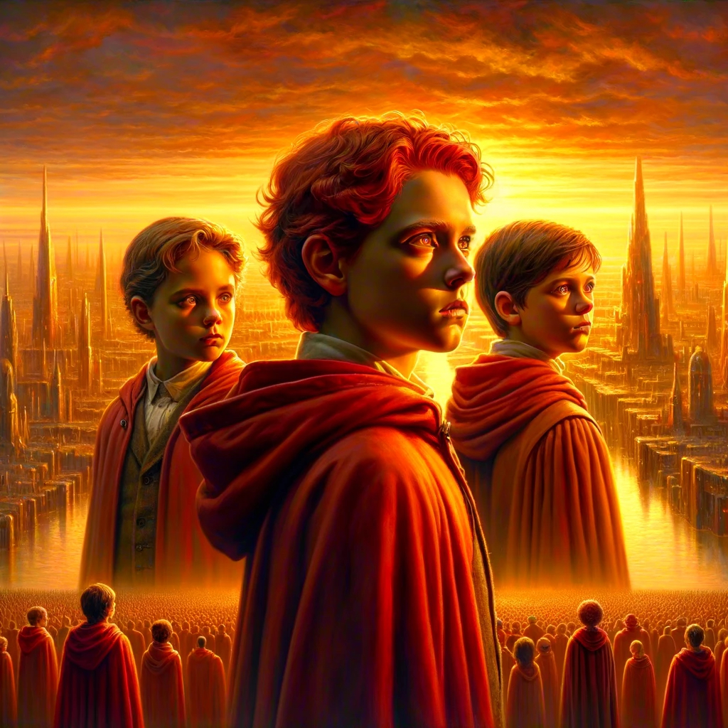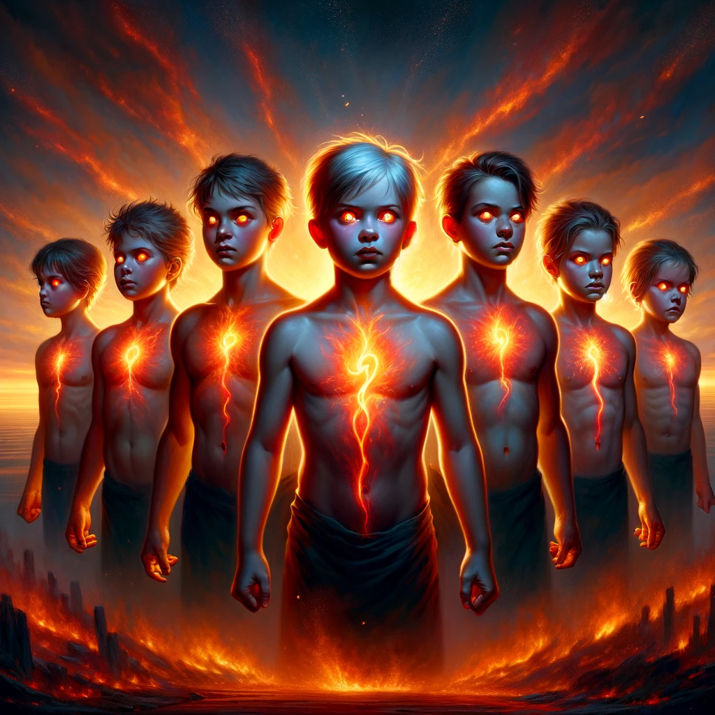 The seven sons of Red, born of the land and imbued with the fire of their mother’s spirit, grew under the sun’s nurturing gaze and the moon’s watchful eye. These children, with eyes as fiery as the dawn, were a testament to the legacy of their parents, a bridge between the realm of Dreamland and the guardians who stood vigilant against the darkness.