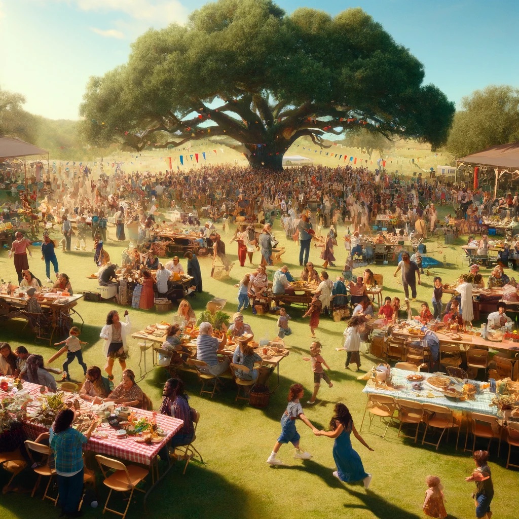 Tables laden with an assortment of foods began to dot the landscape, each spread reflecting the diverse culinary traditions of the gathered crowd. Aromas of barbecued meats mingled with the sweet tang of homemade pies and the rich, earthy scent of freshly baked bread. These culinary offerings were not merely sustenance but symbols of the shared community, each dish contributed by different hands coming together to create a feast that was greater than the sum of its parts.