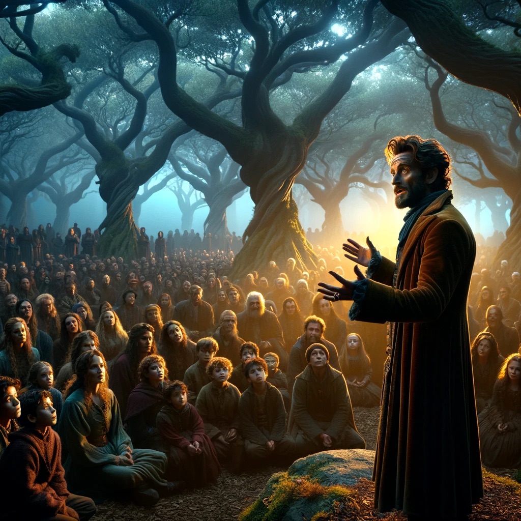 The atmosphere buzzed with a palpable sense of anticipation. Among the ancient oaks of the secluded grove, the air was thick with the scent of adventure as whispers of excitement passed through the crowd. A charismatic figure, clad in a flowing coat that fluttered with every movement, stepped into the clearing, commanding immediate attention.